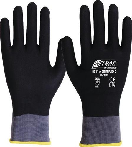 NITRAS SKIN FLEX C · Strickhandschuhe · Spezial-Stretch-Strick · grau · Spezialbeschichtung · schwarz · vollbeschichtet · Strickbund · perfekter Tragekomfort · perfekte Fingerfertigkeit · sehr rutschfest · Top-Qualität · Größe 9