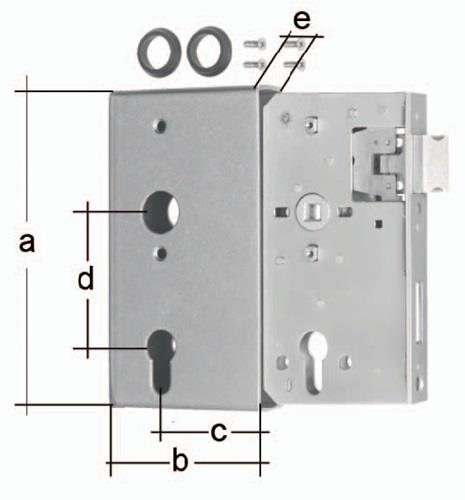 mit verzinktem Schloss · Dornmaß 60 mm · mit zwei Türdrückerführungen · aus Kunststoff · für Ø18 mm Drücker-Ansatz · Kasten Material: Stahl roh, Schloss Oberfläche: verzinkt · links / rechts verwendbar